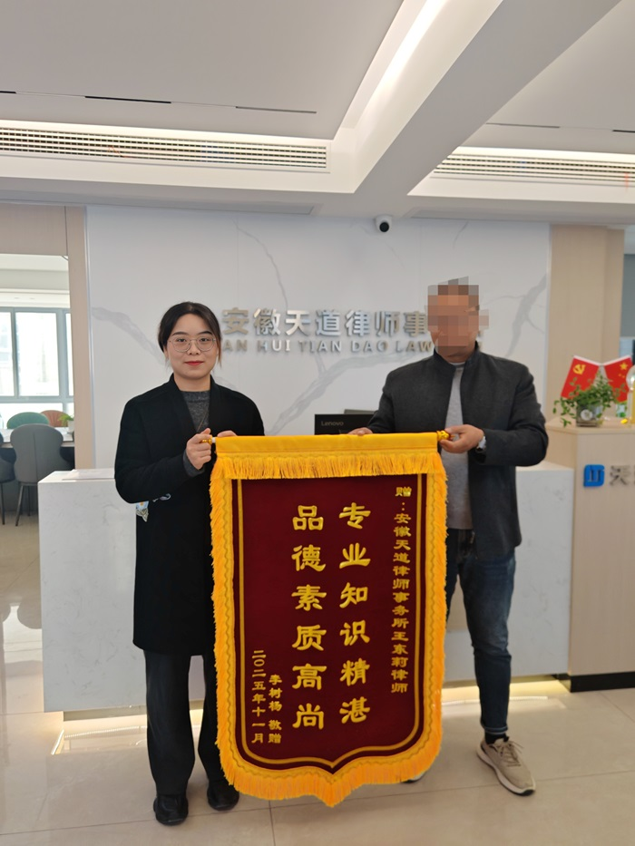 王东莉律师说:这面锦旗,于她而言,是一份荣誉,更是一份鞭策;它印证了“专业、负责、坚守”的执业信念的力量。未来,她将继续以个人的专业与热忱,恪尽职守,为每一位信任她的当事人竭尽全力,维护当事人的合法权益,捍卫法律的公平与正义。