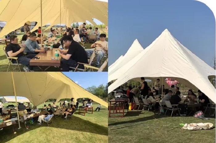 傍晚,露天晚宴将氛围推向高潮!特色农家菜、鲜香烧烤……大家举杯畅饮,分享工作与生活的点滴。新老同事畅谈交心,资深律师讲述执业故事,青年伙伴结合“五四精神”,分享对法治事业的理解和未来规划。在这温馨时刻,天道大家庭的温暖尽显无遗,无关职位,唯有真诚与欢乐。
