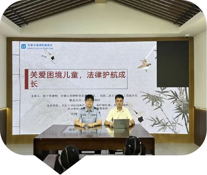 **守护未来,法律温暖童心。法律不仅是惩戒的标尺,更是未成年人抵御侵害的盾牌。司法救助不是施舍,而是孩子应得的公正补偿。本次由秦栏镇司法所等四部门联合主办、安徽天道律师事务所承办的专题活动,是凝聚保护合力、普及法律知识、传递法治温暖的重要一步。安徽天道律师事务所将以此次合作为契机,继续秉持**精神与社会担当,与政府、社会各界携手同行,以法律为盾,用**为翼,持续为困境儿童撑起法治晴空,守护每一株在风雨中摇曳的幼苗,让司法的光芒,照亮他们通往未来的路。